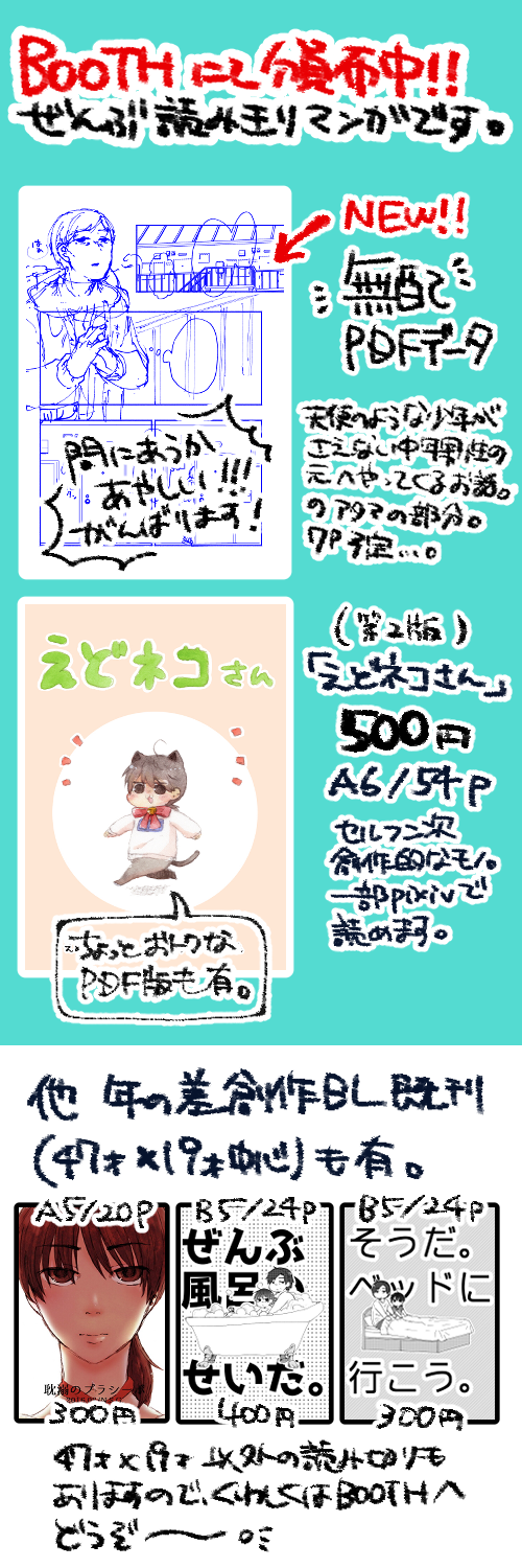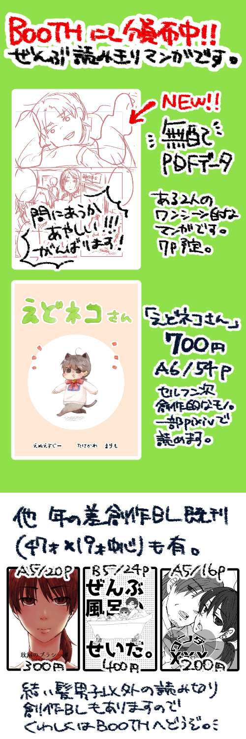 ⇒20/10/19変更 チャレマさん閉鎖のため、今後は紙媒体の通販はBOOTHさんのみになりました。